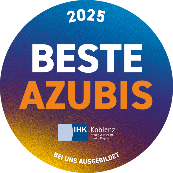 Für unser hervorragendes Ausbildungsprogramm wurden wir zuletzt mit dem IHK-Siegel „Beste Azubis 2025 – bei uns ausgebildet“ ausgezeichnet.