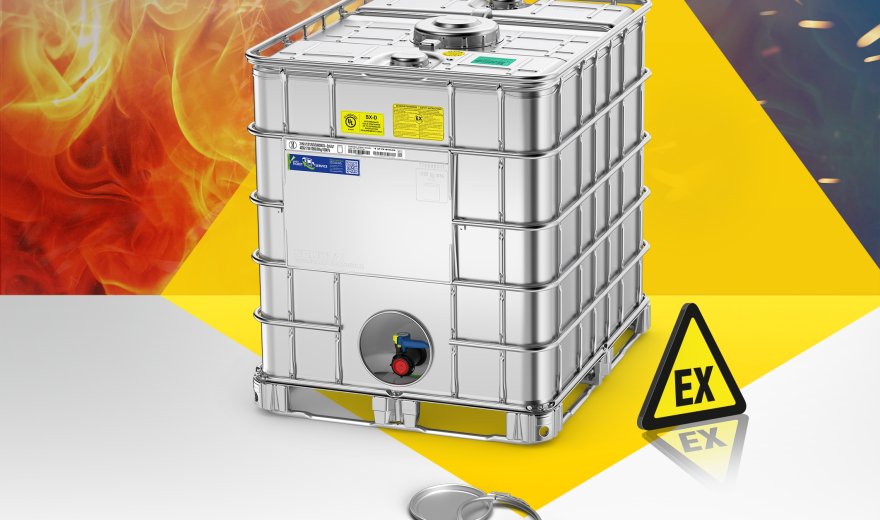 The safe transport and storage of combustible hazardous liquids is regarded as one of the greatest challenges in packaging management. Schütz has developed the Ecobulk SX-D to meet these requirements: an IBC with an HDPE inner container and a completely closed, fireproof steel shell. This also serves as an integrated containment basin and prevents the contents from escaping even in the event of a fire. The double-wall design thus offers a high level of protection, even for demanding Class 6.1 hazardous goods. Thanks to its special properties, the SX-D is the only combination IBC to date with certification by FM Global. It also meets the requirements of Underwriters Laboratories (UL) with regard to safety and fire resistance. The Ecobulk SX-D is not only suitable for use in Ex zones 1 and 2, but also for particularly sensitive areas where fire and leakage protection and risk minimisation are top priorities. The IBC has a filling volume of 1,000 litres and contents can be discharged via the front bung on the top of the container.